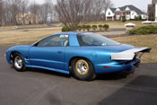 At long last the car was finished and brought to the prime example of a Firebird raised from the ashes as GM had already stopped production of this model. Shawn brought back the memories of the ferocious Trans Am's of the early seventies adding the single white stripe down the complete center of the body mimicking the ruthless Super Duty's and HO 455's.